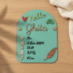Plaque de naissance bébé personnalisée, idéale pour immortaliser les premiers instants de votre enfant avec élégance. Prénom, date, heure, poids, taille et lieu de naissance : chaque détail transforme cette création en un souvenir unique et plein d’émotion.